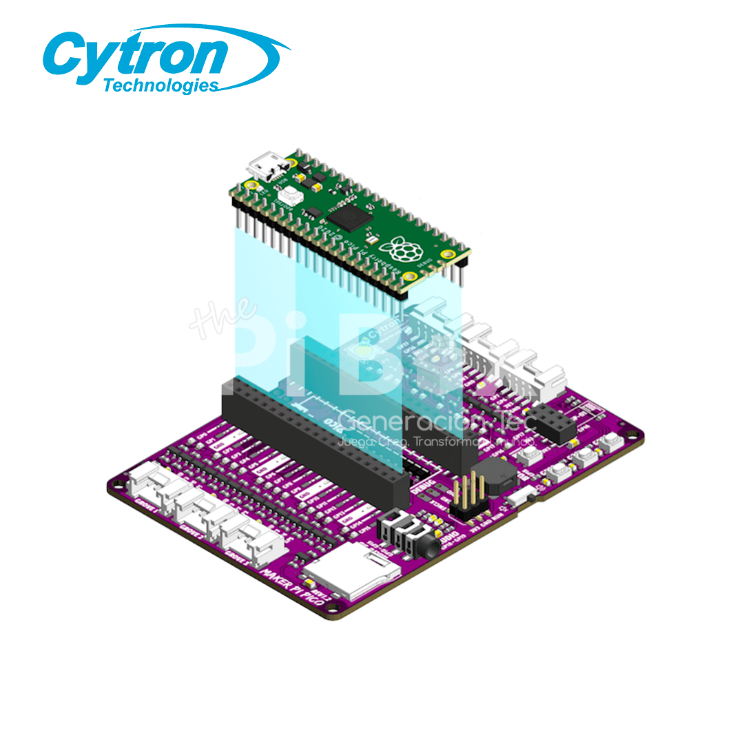Solo necesitas conectar tu Raspberry Pi Pico a la placa Maker Pi Pico y listo. Podrás controlar el LED RGB que trae a bordo, producir sonidos con el buzzer incorporado o usar la salida de audio integrada con tus parlantes o audífonos preferidos. Guarda tu música favorita en una tarjeta micro SD y léela con tu Raspberry Pi con el lector micro SD de la Maker Pi Pico. Puedes controlar la reproducción del audio con los botones incorporados. O puedes crear un sistema de obtención de datos conectando sensores Grove a cualquiera de los puertos Grove de la Maker Pi Pico y grabando la información en la tarjeta micro SD.